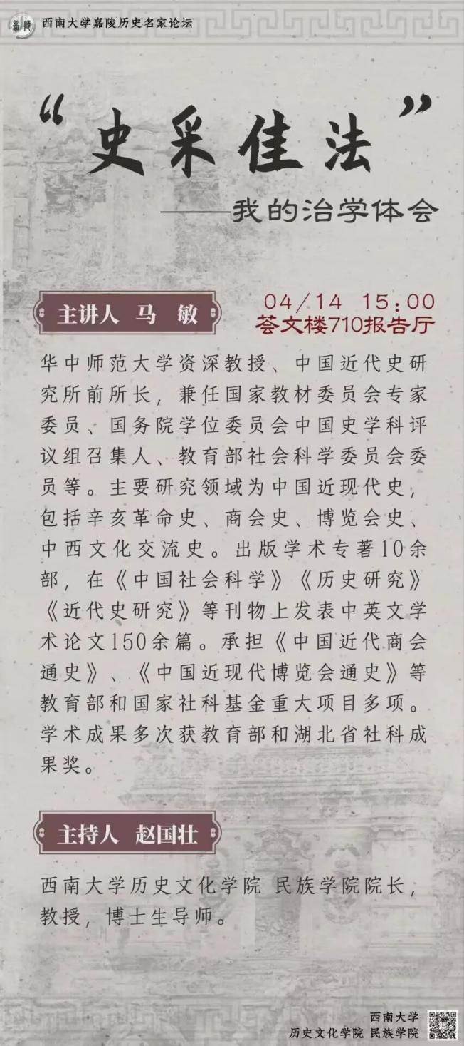 马敏,华中师范大学资深教授、中国近代史研究所前所长,兼任国家教材委员会专家委员、国务院学位委员会中国史学科评议组召集人、教育部社会科学委员会委员等。主要研究领域为中国近现代史,包括辛亥革命史、商会史、博览会史、中西文化交流史。出版学术专著10余部,在《中国社会科学》《历史研究》《近代史研究》等刊物上发表中英文学术论文150余篇。承担《中国近代商会通史》、《中国近现代博览会通史》等教育部和国家社科基金重大项目多项。学术成果多次获教育部和湖北省社科成果奖。